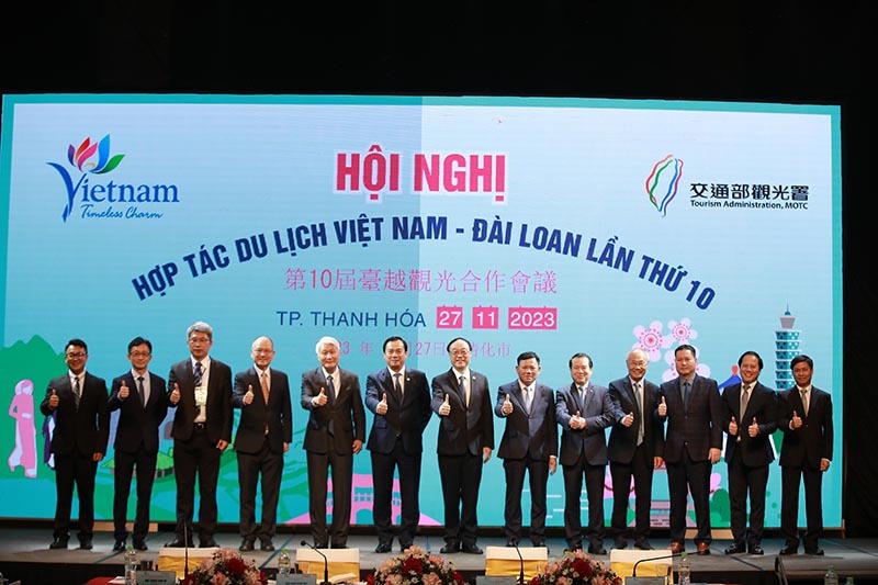 第十屆臺越觀光合作會議,於本(112)年11月27日在越南清化省舉行,由交通部觀光署署長周永暉與越南國家旅遊局局長阮重慶共同主持,臺灣代表團包括台灣觀光協會葉菊蘭會長、地方政府、航空公司與旅行社等產、官、學界34人共同參加,在駐越南臺北經濟文化辦事處石瑞琦大使協助下,會中達成以APEC架構,強化美食交流、觀光宣傳推廣、旅遊地點鏈結、人才培訓、支持主題性旅遊推廣、加強雙方旅遊安全管理、以及力促雙邊代表協會合作等七項合作共識,並訂定雙邊送客200萬人次的目標,也宣布2024年第十一屆臺越觀光合作會議在臺中市舉辦。