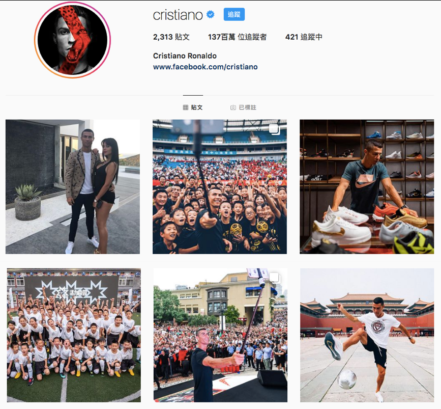 有趣的是,Instagram 的使用者性別比例雖然是女性居多,但這份由 HopperHQ 提供的榜單上前 10 名是男女各半,上榜的五位男性裡,有三位都是知名足球運動員,例如:名列第三的 C 羅、第八名的內馬爾、還有第九名的梅西。
