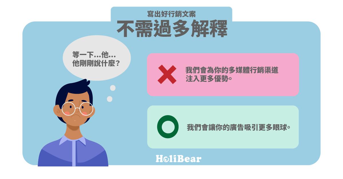 你是否也看過這樣的廣告文案?囉哩八唆講了一大堆,看完了整篇還不知道究竟要表達什麼意思。要知道觀眾的注意力是有限的,把最重要的訊息盡快點出才能成功抓住觀眾的心。