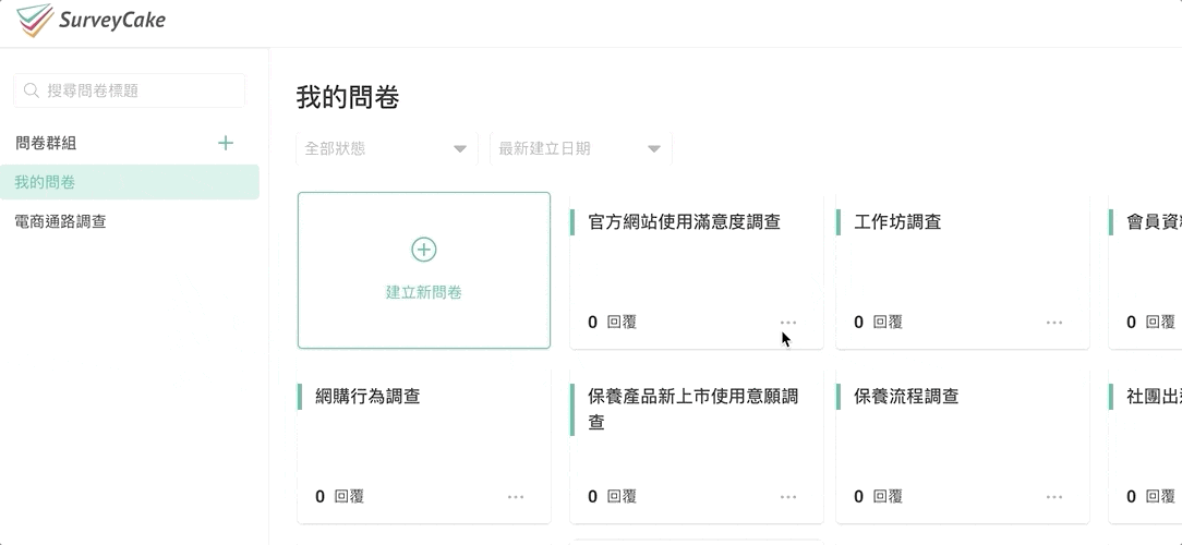 如此一來就能將多份問卷輕鬆歸類至不同的問卷群組中,方便你日後查詢更方便,也可以讓版面更簡潔!