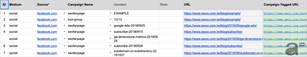 要注意大小寫視為兩種不同的參數,例如Facebook、facebook,在GA數據中將會分開來表示。