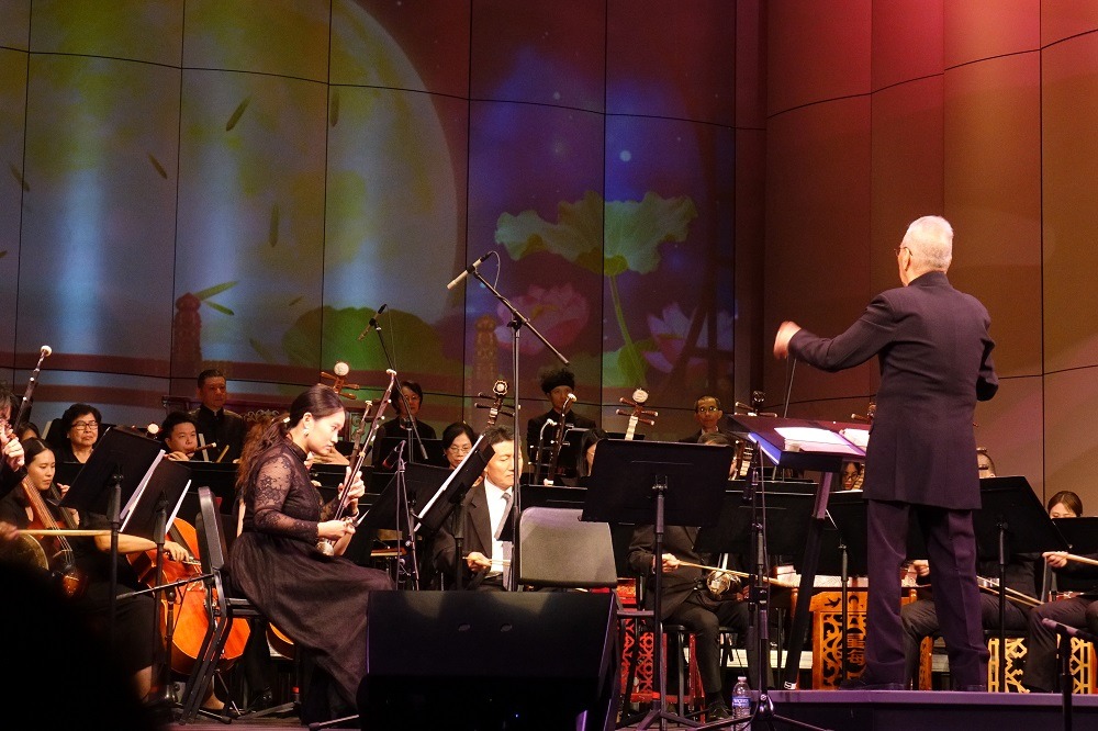 美國當地時間8月25日晚間7時,由國際知名指揮家瞿春泉帶領桃園市國樂團與美國當地傑出團隊美國中華國樂團進行文化交流,演出「桃花源民族交響音樂會」,會中多樣曲風,展現繽紛樣貌,現場將桃園在地特色曲《春風送桃園》、《望春風》與現場觀眾分享,亦有國樂經典曲目《陽明春曉》、《江南好》、《龍騰虎躍》,同場越劇藝術家鄔素斐展現滬劇、越劇迷人丰采,全場觀眾為之驚艷,迴響不絕。