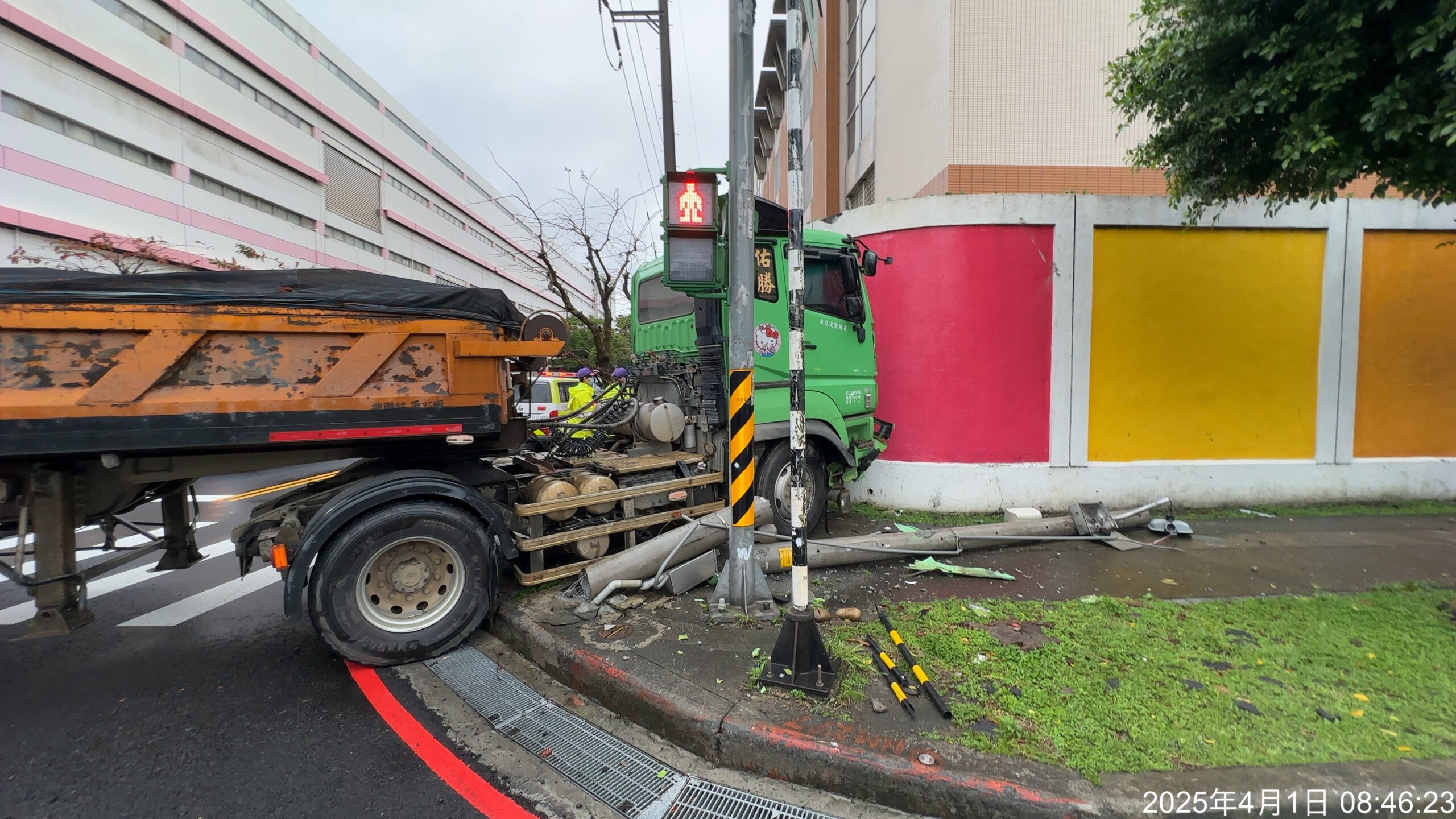 中壢交通中隊說明,廖男駕駛砂石車,疑似恍神不慎撞上吉林路與北園路口路燈桿,造成燈桿斷裂,現場無人受傷。經警方到場實施酒測檢查,廖男酒測值為0,詳細肇事原因,尚待警方進一步調查釐清。