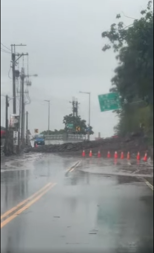 網友在臉書社團台東大小事指出,過鹿鳴橋往初鹿方向土石流,整片道路都被淹沒,另外台東大橋舊,地藏王菩薩轉彎處山邊崩落道路中斷。