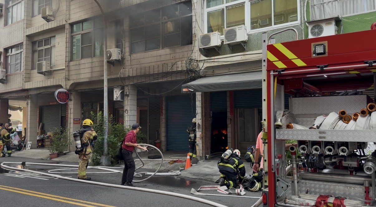 消防說明,今日武慶一路火警,現場為三樓平房加蓋鐵皮,到場已經發現有火煙,破門進入後射水搶救,火點在一樓燃燒雜物,所幸裡面無人受傷受困。