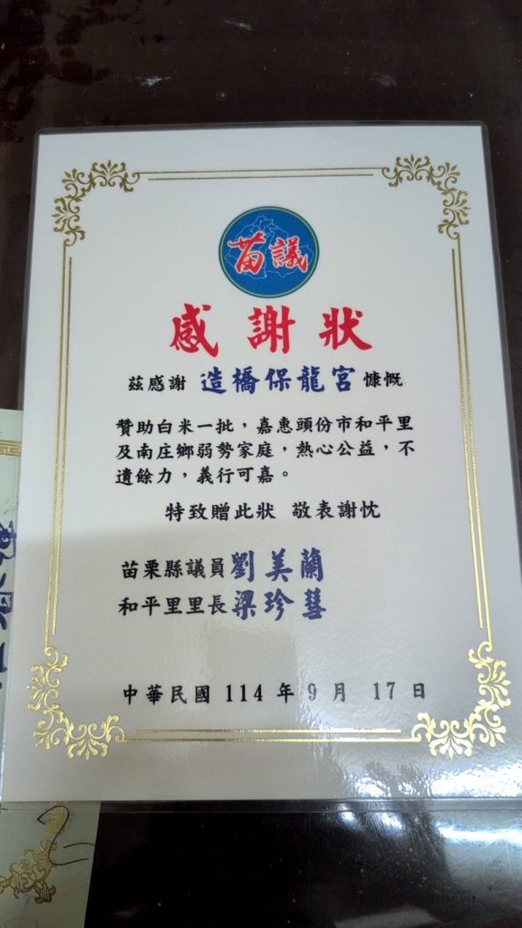 苗栗縣後龍鎮保龍宮發揮宗教善心,日前捐贈白米物資給縣內弱勢團體與偏遠地區居民,讓許多家庭在生活困境中獲得實際幫助。此次愛心行動獲得地方熱烈回響,和平里辦公處及縣議員劉美蘭皆共同表達感恩之意。