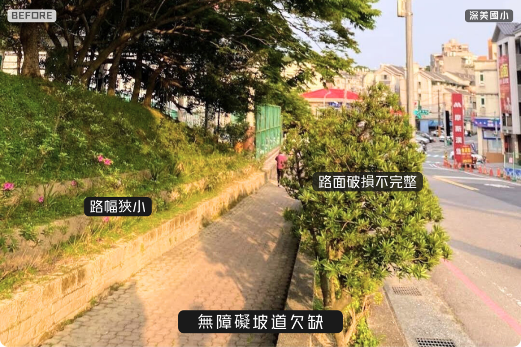 本次改善工程透過專業規劃評估,針對包括暖暖區的碇內國中、信義區的成功國中、東信國小、深美國小、東光國小,以及中正區的正濱國中等進行改善,其中碇內國中、深美國小、東光國小原本的路面破損不完整、路幅狹小及無障礙坡道欠缺的問題;成功國中、正濱國中更是從未有通學步道;東信國小除了前述的狀況外,同時還存在天橋使用率偏低的問題。