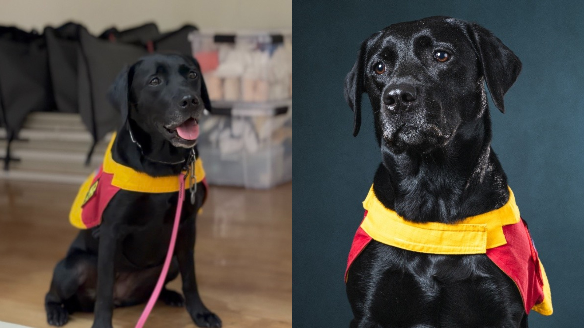 ▲搜救犬咪娜。(圖/左:記者金東天攝,右:高市消防局提供)