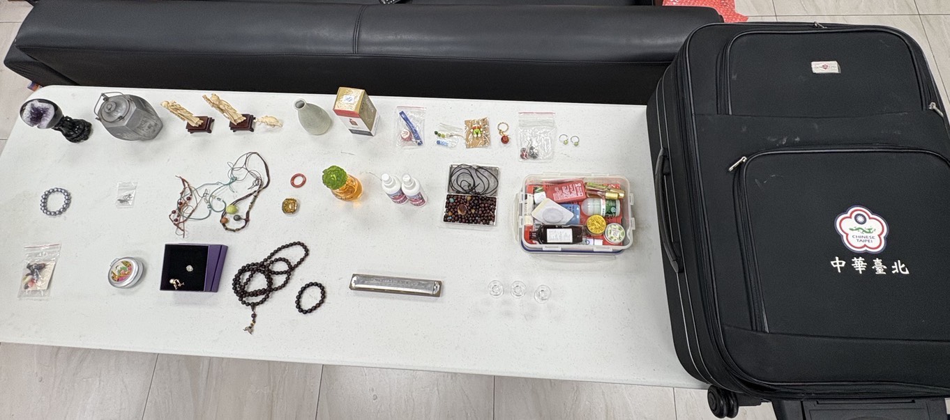 據了解,鍾姓男子(57歲)與莊姓男子(48歲)因缺錢買毒品共謀犯案,9月6日凌晨從二樓窗戶入侵,搬走精品行李箱、紫水晶球、象牙雕像、茅台酒及其他珍藏飾品,再由同夥駕駛機車接應逃逸。新埔分局接獲報案後立即展開調查,調閱沿線監視器畫面鎖定鍾、莊2人涉案報請新竹地檢署指揮偵辦,日前將2人拘提到案,警方在鍾嫌暫住處查獲失竊物品25件,已發還被害人,另查扣安非他命1.24公克、依托米酯菸彈與菸油;莊嫌住處亦搜出安非他命0.33公克及吸食器。