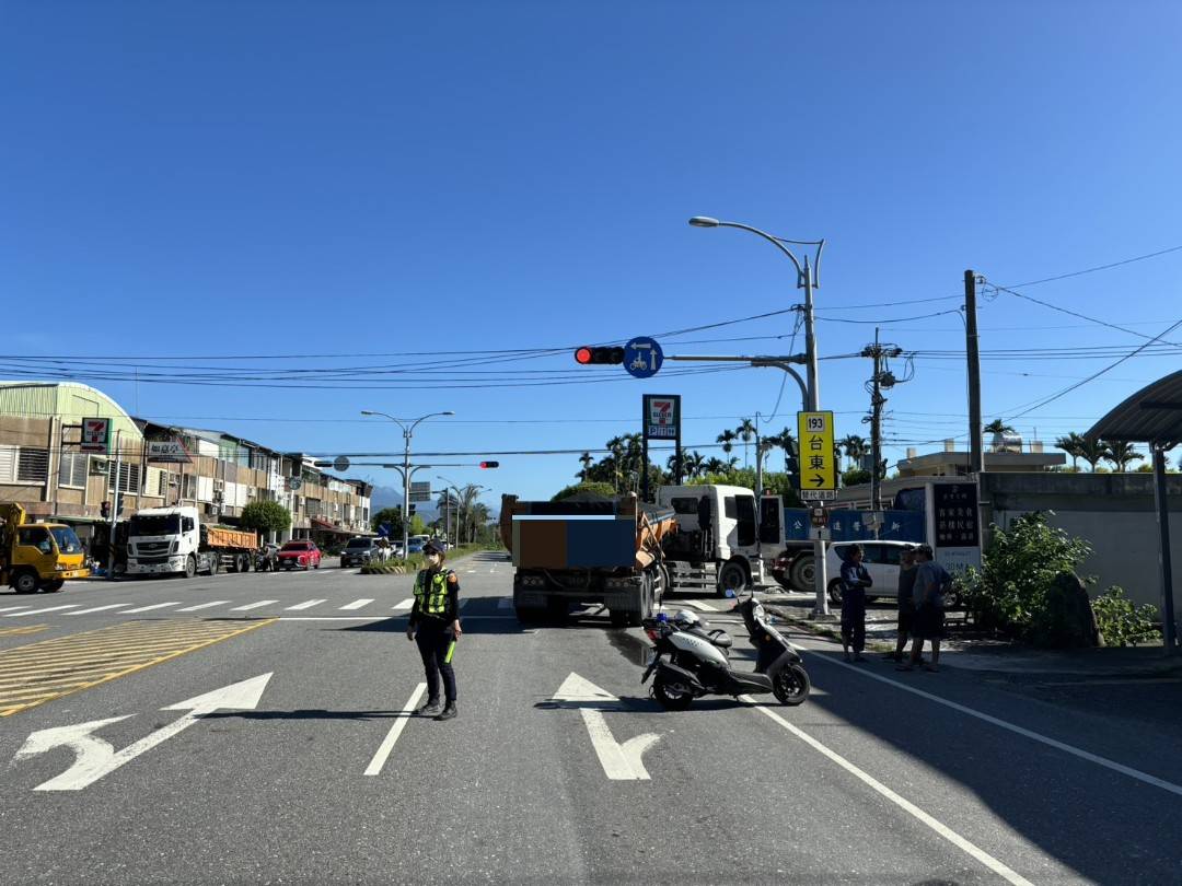 花蓮鳳林消防隊前發生車禍,員警到場調查處理。翻攝畫面
