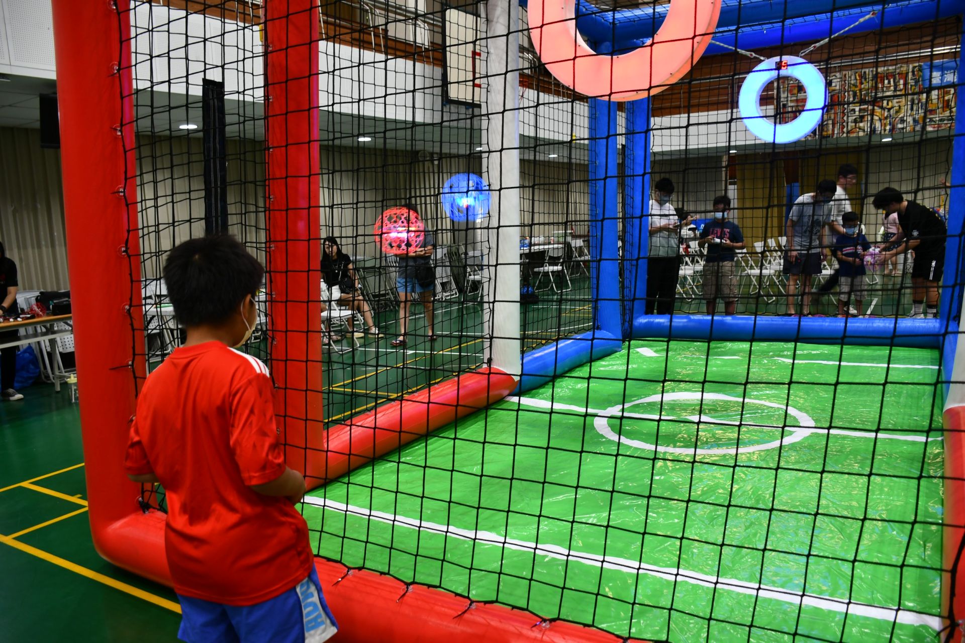 圖說:小朋友以無線搖控器指揮浮動足球進行競賽