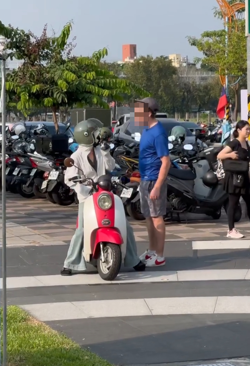 【Lai傳媒、記者爆料網/林千允/台中報導】台中市一處市集旁近日發生人行道糾紛,一名女騎士騎著紅白機車直接騎上人行道,疑似為了停進人行道上的機車格,卻不慎擦撞到一名路過的外籍男子。沒想到對方立刻用流利中文怒罵:「你在做什麼!Sorry不夠好!」語氣激動,讓現場民眾全看傻。