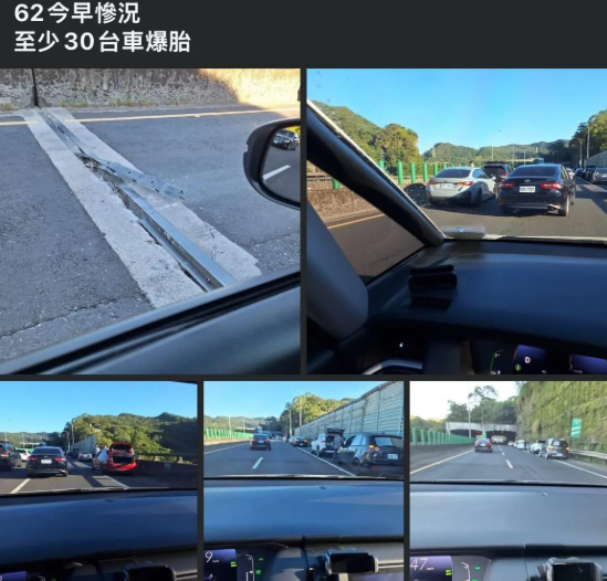 【Lai傳媒、記者爆料網/謝建成/基隆報導】今(7)日清晨7時許,基隆市七堵區台62線北向4.5K處發生橋面伸縮縫鐵片隆起意外,多輛車行經時疑似遭突起路面彈起導致爆胎拋錨,現場一度陷入混亂,通勤車流嚴重回堵。
