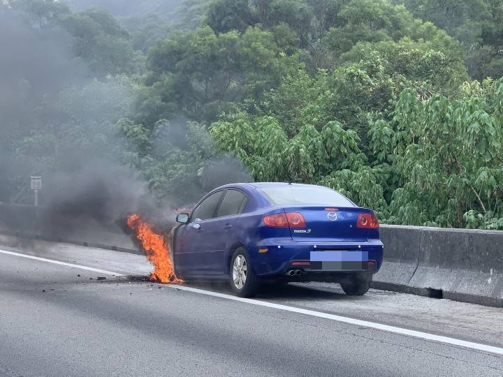 【賴傳媒、記者爆料網/周庭慶/苗栗報導】 國道1號苗栗三義路段今(2)日中午11時許發生火燒車事故!國道警察第三大隊表示,11時22分獲報,國道1號北向153公里苗栗三義路段火燒車,占用外側路肩。