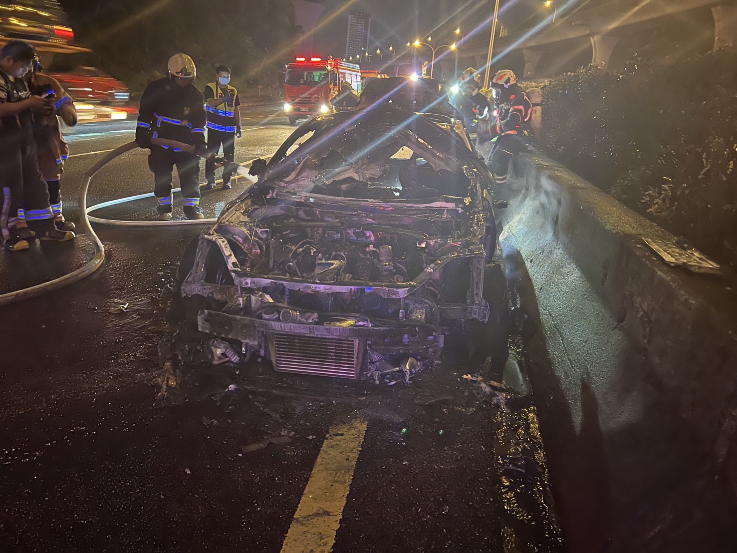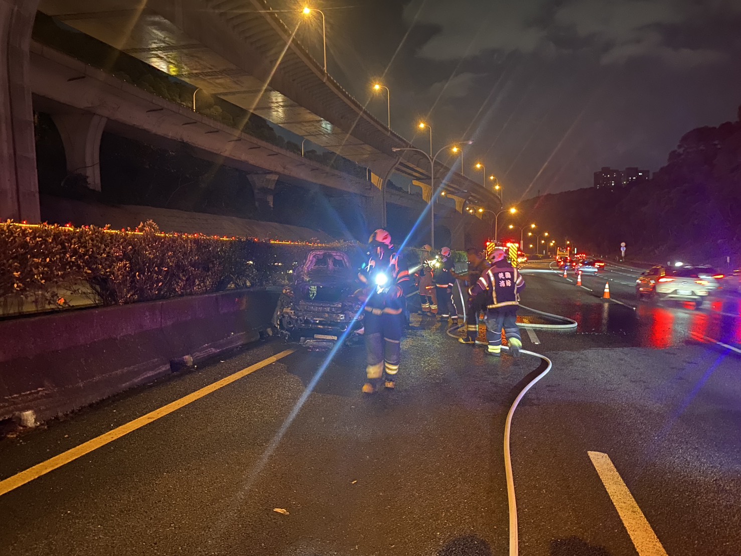 【lai傳媒、記者爆料網/周庭慶/新北報導】國道1號北向39.9公里林口路段昨(8)日發生火燒車事故!國道警察第一大隊於22時19分左右接獲通報有1部自小客車起火燃燒,立即通報線上巡邏車前往查看,並通知119派消防車,警消迅速抵達現場,封閉內側車道處理。