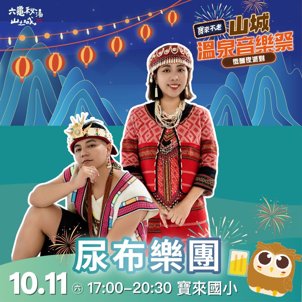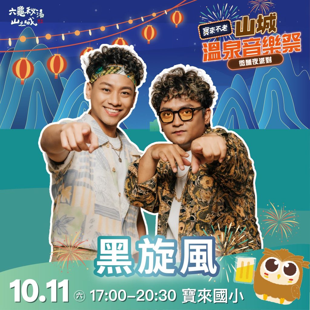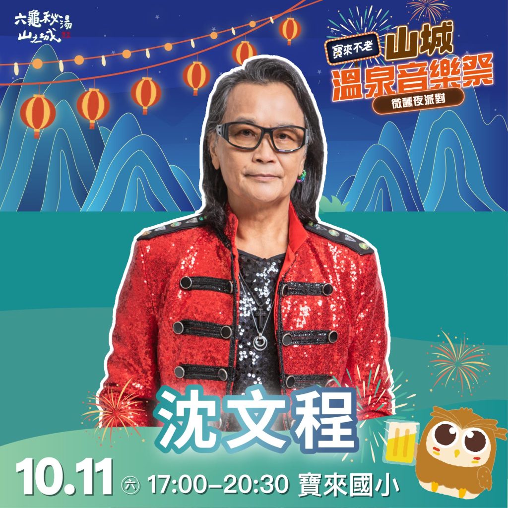 2025-2026寶來不老溫泉季以「六龜祕湯山之城」為主題,首場「山城溫泉音樂祭」將於10月11日晚間在寶來國小盛大舉辦,邀請金曲歌王沈文程、黑旋風、DJ妖嬌與尿布樂團接力開唱!