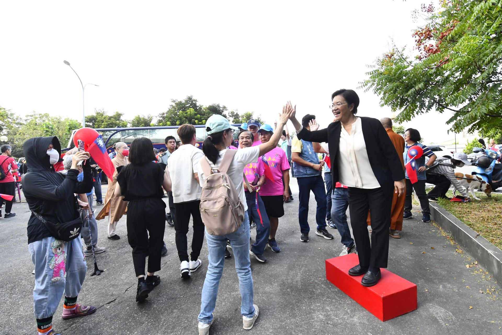 圖說:彰化國慶日健行活動 王惠美特別一一為參加的民眾加油打氣