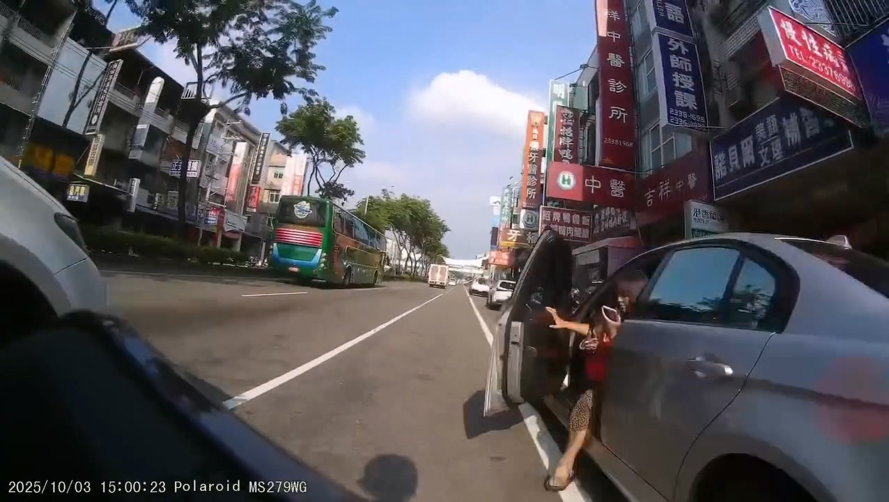 台中騎士被路邊女駕駛突開門車擊落,行車紀錄器影片曝光。