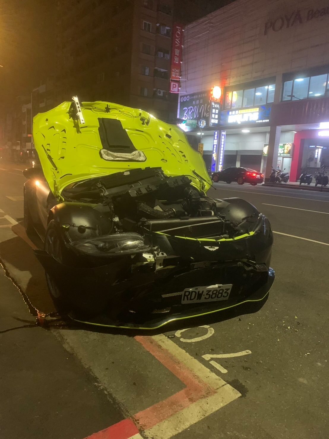 一輛Aston Martin右轉車速過快,撞對向計程車後,肇逃再撞2車,而駕駛棄車逃跑不知去向。