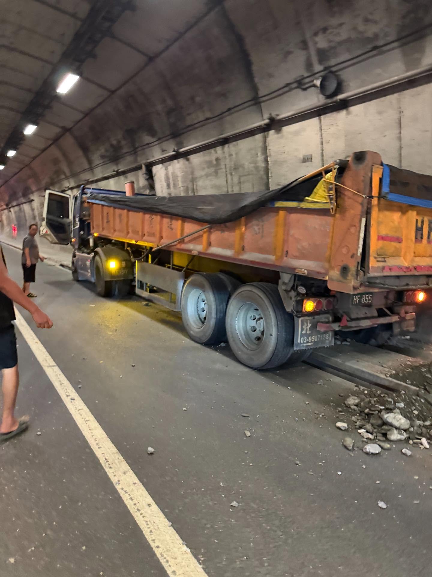 大貨車行東澳隧道失控一路擦撞牆壁。翻攝Threads@tychinfin