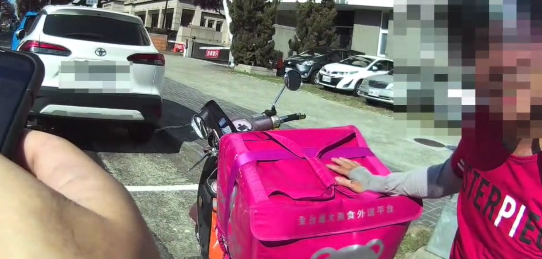 【賴傳媒、記者爆料網/周庭慶/台中報導】前(1)日14時40分許,從事外送員工作的梁姓男子騎機車停靠在崇德路3段與松竹路2段路口、台中市警五分局四平派出所側邊路旁,正要出勤的警員趙伯修及何思嫺發現機車車牌上貼著「劫財沒有劫色配合」的貼紙, 遮住了牌號導致牌號導致無法清楚完整辨認,隨即攔下。