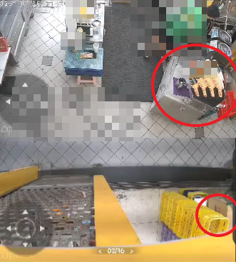 業者拿出畫面證實飲料杯旁根本不能放小狗(上紅圈處),小狗是在裡面的紙箱上(下紅圈處),質疑有心人士故意喬角度拍攝。業者提供翻攝