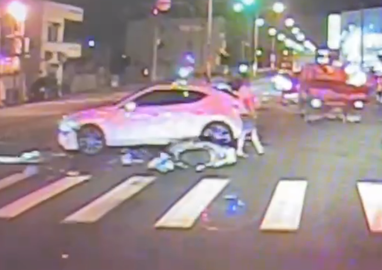 消防局獲報現場有兩名傷者,其中1名疑似受困車底。消防隊員抵達現場,發現傷者只有1名14歲陳姓少年,意識清楚躺在馬路,觀察為右大腿變形及右腰擦傷予骨折固定及清洗傷口送醫,後續由警方調查處理。