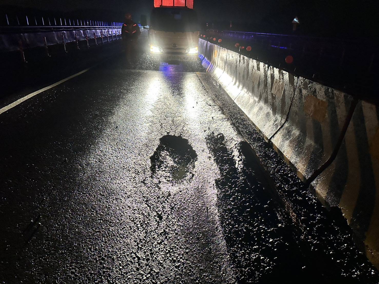 警方立即於現場設置警示標誌並實施交通疏導,避免更多車輛受害,並通知工務段人員到場修補路面,後續由工務單位完成維護作業,現場交通恢復正常。竹南分局提醒,近日天候不穩,駕駛人行車應減速慢行、保持安全距離,若遇突發狀況切勿緊急煞車或猛打方向盤,以免發生二次事故,確保行車安全。