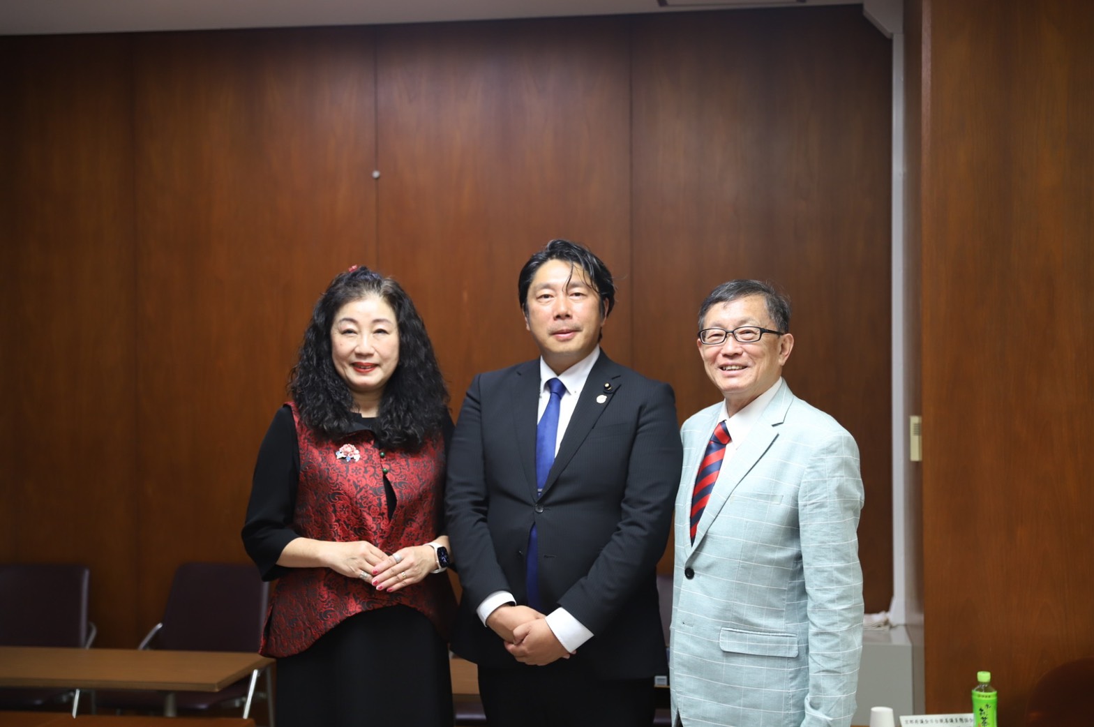 ▲跨越國際女性交流會 赴京都以真善美深化台日情誼(左:跨越國際女性交流會 創會長藍淑琴 中:京都府議會議長荒卷隆三 右:跨越國際女性交流會 顧問麻高霖)(圖/ 跨越國際女性交流會 提供)