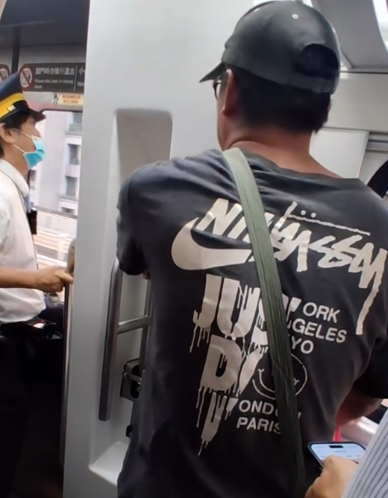 男子酒後在台鐵列車胡言亂語,被鐵路警察請下車。翻攝畫面