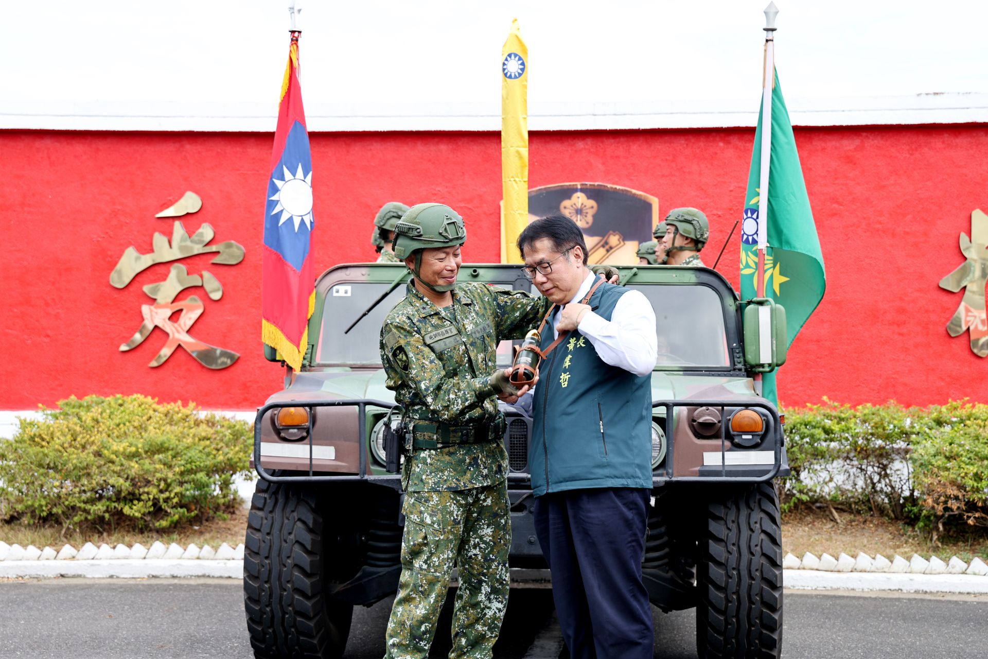 活動上,砲校指揮官李少將特別贈送象徵榮譽與使命的「砲彈造型水壺」給黃市長,寓意「使命傳承」,黃偉哲則回贈「野戰帽」表達敬意,感謝部隊多年守護地方,並祝福官兵在新營區訓練順利。