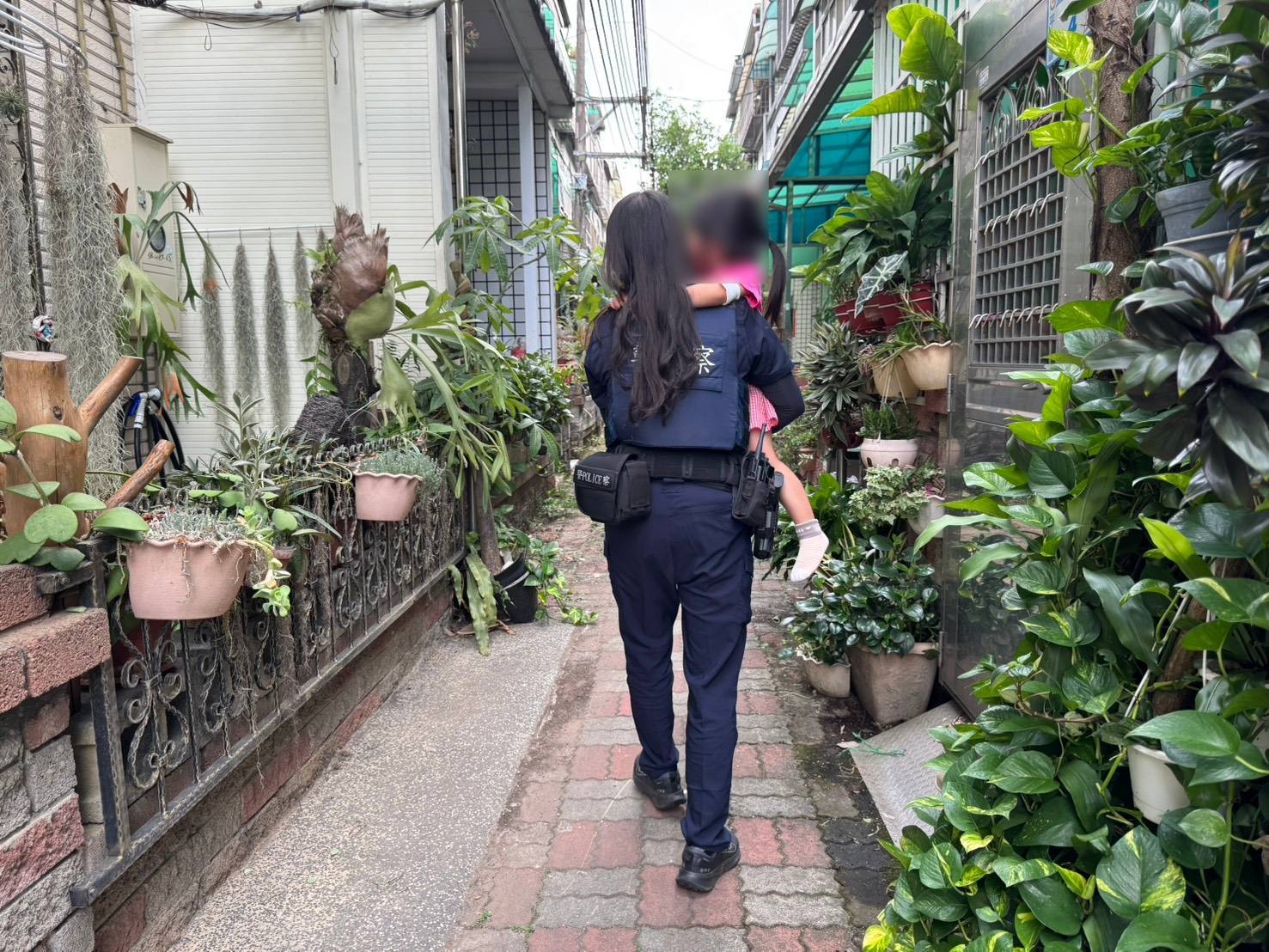 ▲桃園一名5歲女童趁家人不注意,開門出去玩,找不到回家的路,所幸遇到暖心女警,將女童平安帶回家。(圖/警方提供)