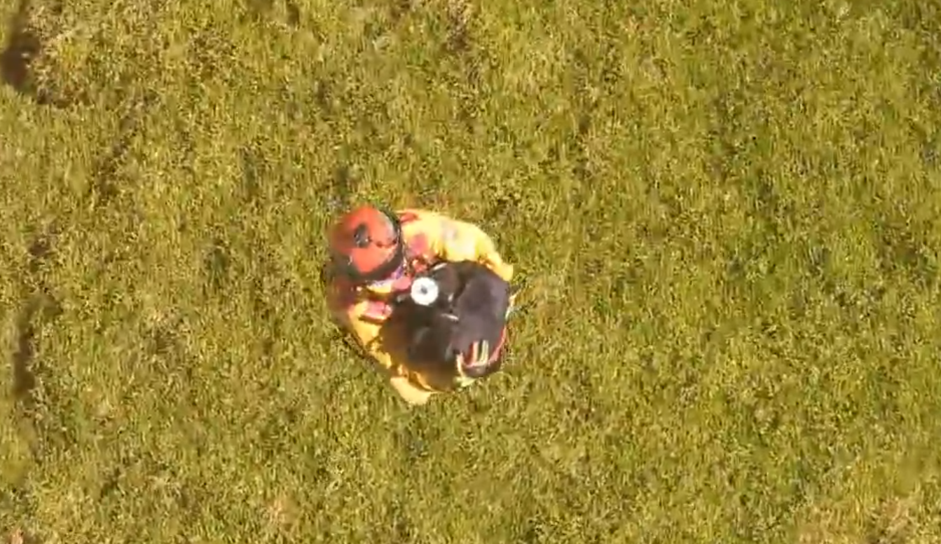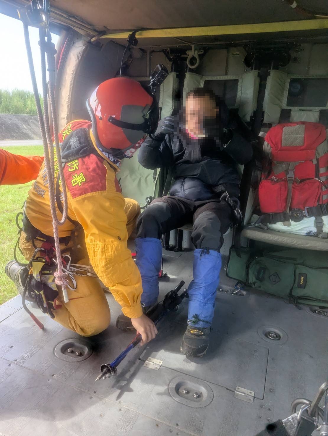 攀光頭山摔倒腦震盪男登山客由直升機吊掛脫困送醫。翻攝畫面