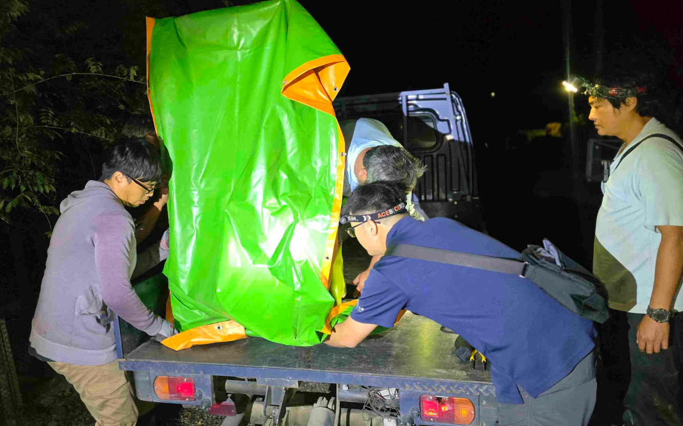 花蓮卓溪鄉黑熊誤入工寮被捕獲。翻攝林保署花蓮分署臉書