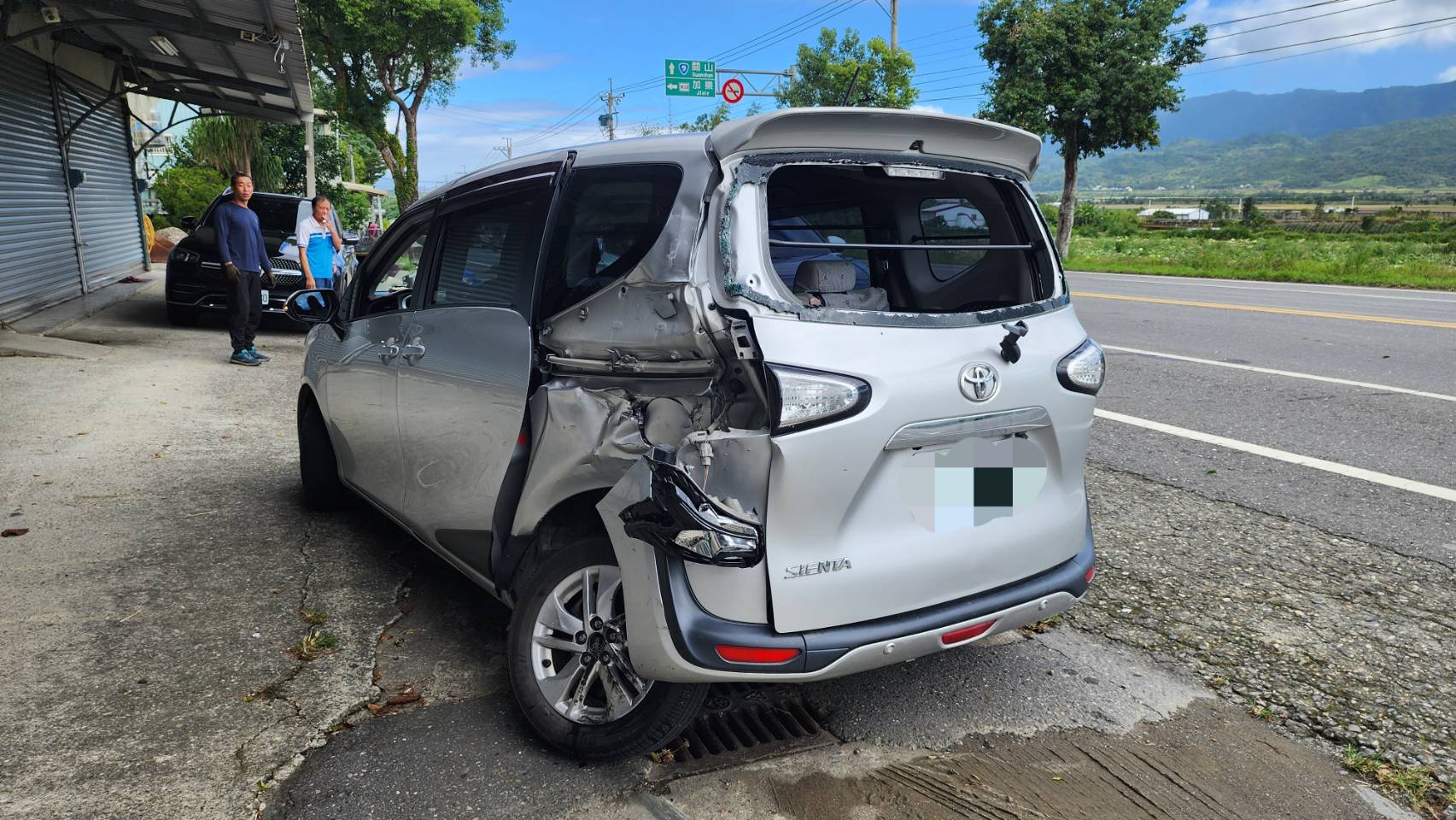 休旅車車尾毀損。翻攝畫面