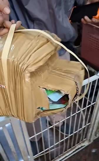 從照片可見,紙箱外層幾乎完全被壓扁,像是被多次重壓後整個潰縮,還出現破洞,裡頭物品清晰可見,讓不少網友看傻。