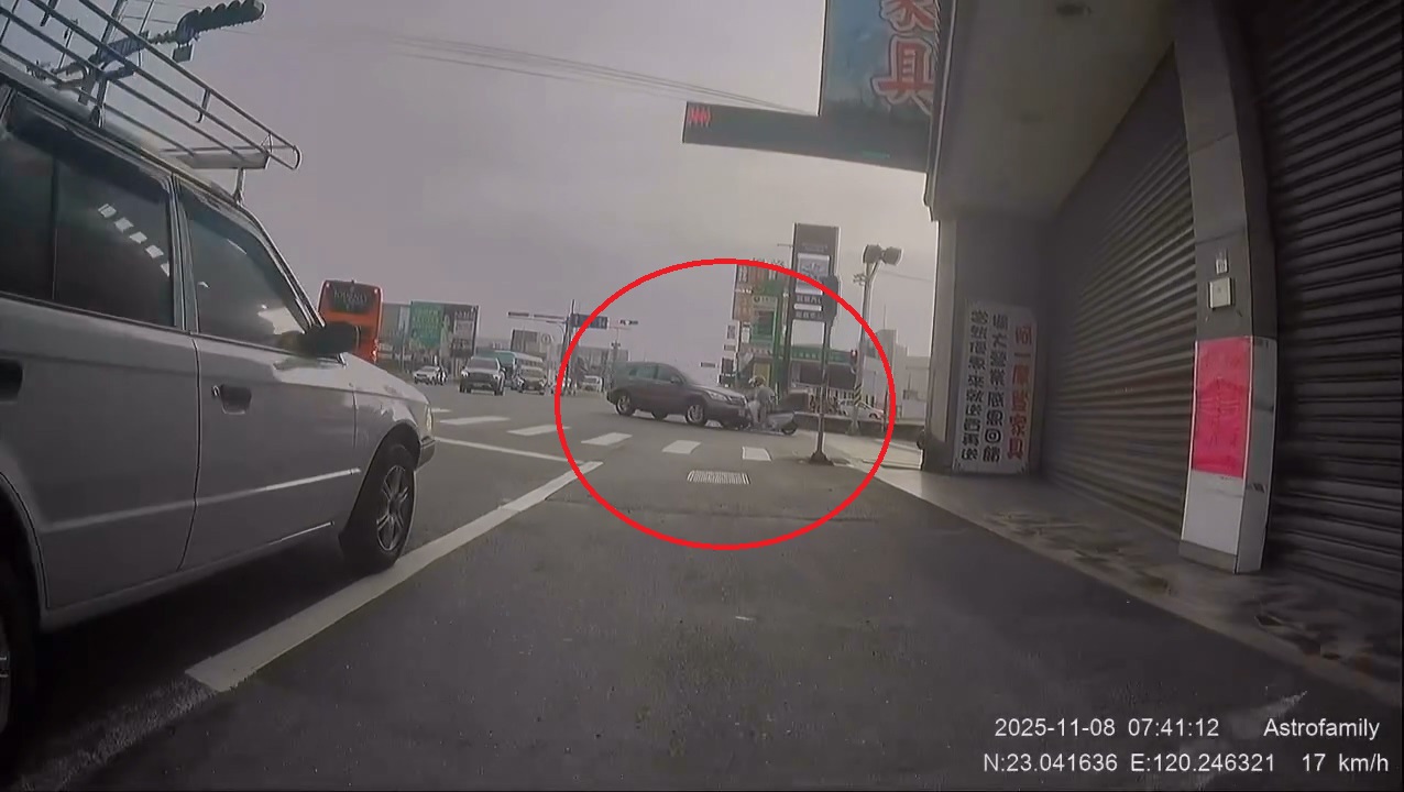 台南一名騎士停在待轉區等紅燈,沒想到被一輛左轉休旅車撞倒輾過。