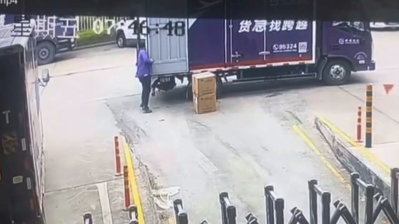 一段今年3月14日的工安意外影片,近日在網路上瘋傳,江蘇常州一名送貨駕駛,疑似站在車後頭部伸進車內時,誤觸關門鍵,結果被貨車尾門夾死。