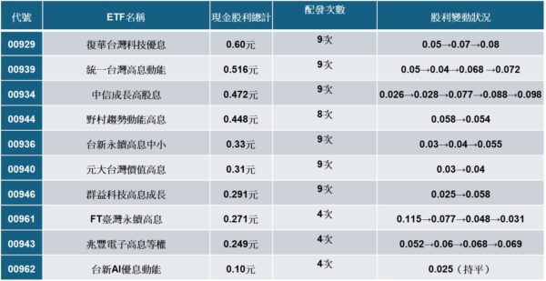 2025年前三季月配高股息ETF配息排行榜