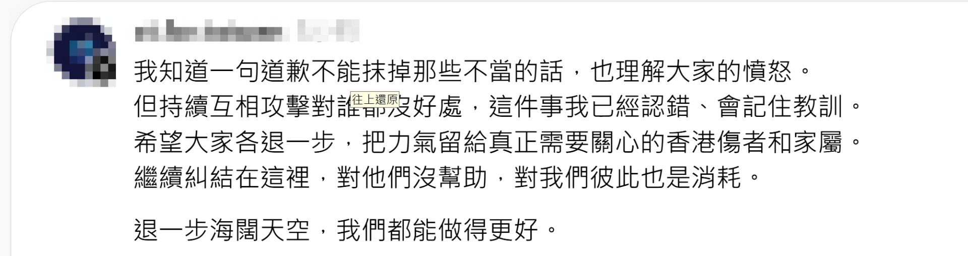 該帳號緊急刪文道歉,坦承發言失當、對罹難者及家屬造成傷害,卻又補上一句「退一步海闊天空」,試圖勸雙方停止攻擊,反而被認為是在替自己開脫,再度遭到炎上。網友痛批消費災難毫無同理心,也質疑該帳號只在意粉絲數與形象。這起風波也再度引發討論,社群時代一句話的分寸,往往比想像中更沉重。