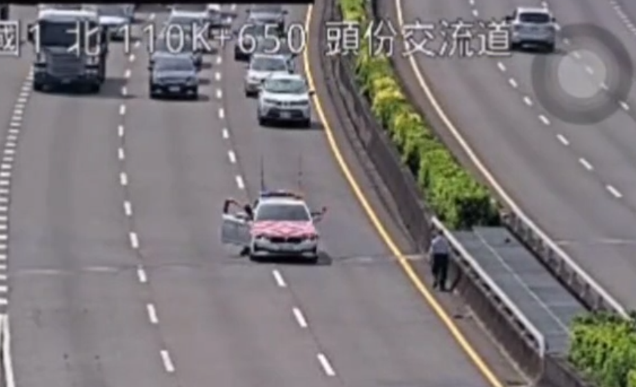 國道警察第二大隊員警將闖入國道男子帶離。翻攝畫面