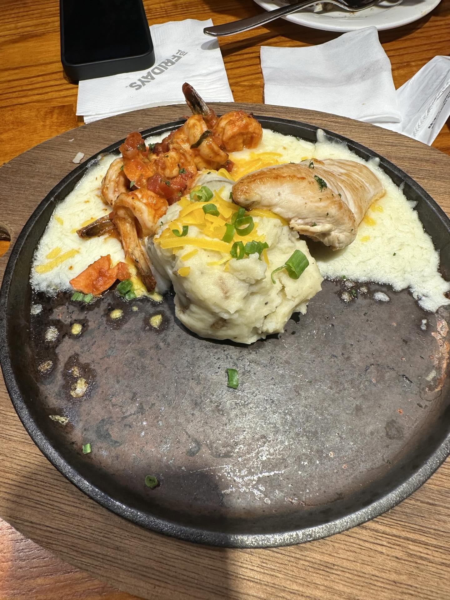 網友在Threads發文指出,上週五去tgi Fridays 點餐,想說試試看點不一樣的,結果上來時,驚呆了!650元的鐵板起司雞肉鮮蝦另一半鐵盤是空的耶,還請服務生來請教,這道菜另一半鐵盤真的就是空的嗎?他說對啊….。