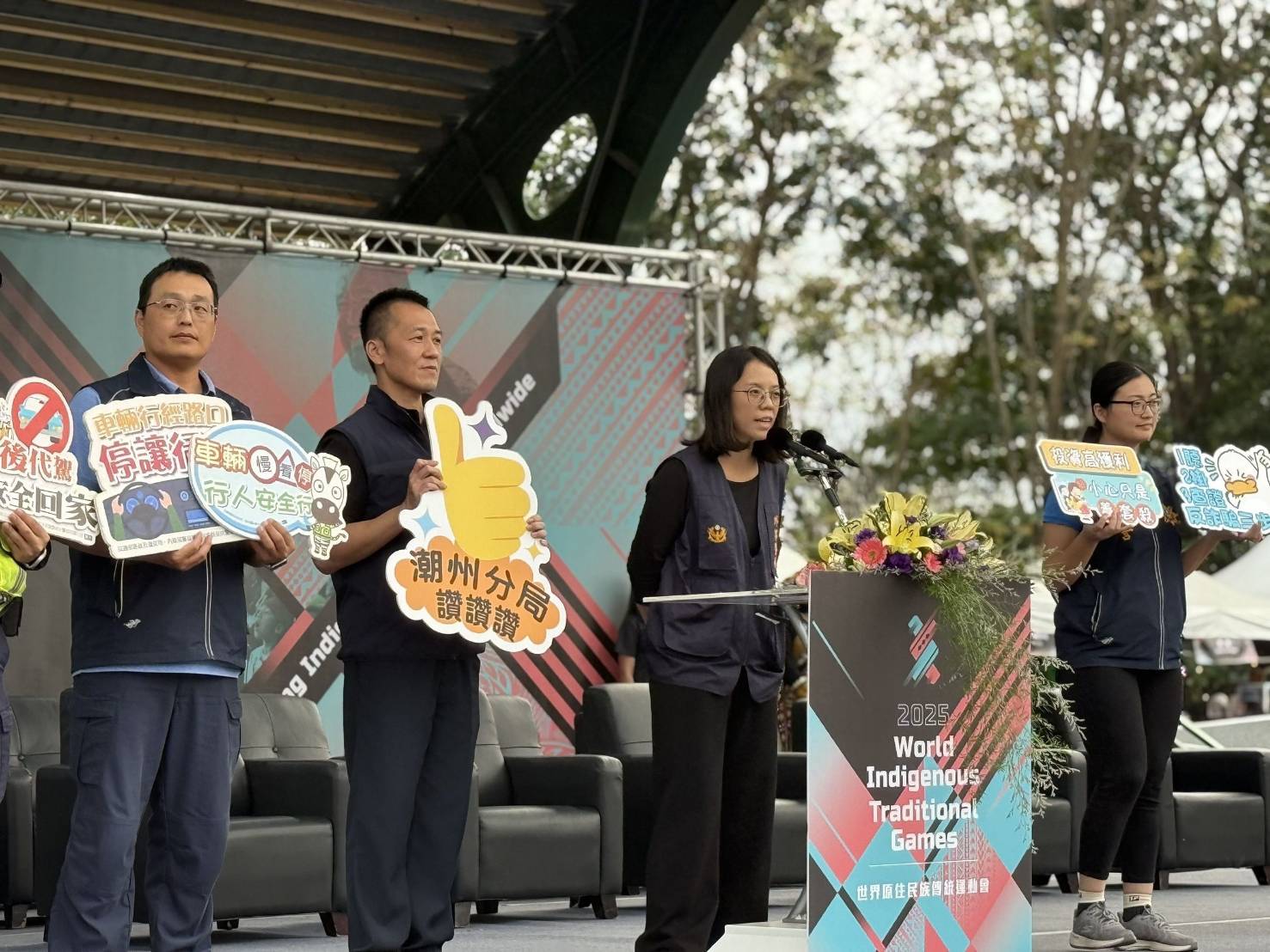 【記者 彭可/綜合報導】「2025世界原住民族傳統運動會」於今(12)日迎來盛會的高潮與閉幕典禮,為期三天的國際賽事吸引來自10個國家、共1100名選手的參與,成為一場文化的融合與交流。屏東縣政府警察局潮州分局利用這一難得的機會,由分局長林俊雄親自率領「反詐宣導團」,在閉幕式前夕進行反詐宣導,展現「打詐沒有國界」的理念。