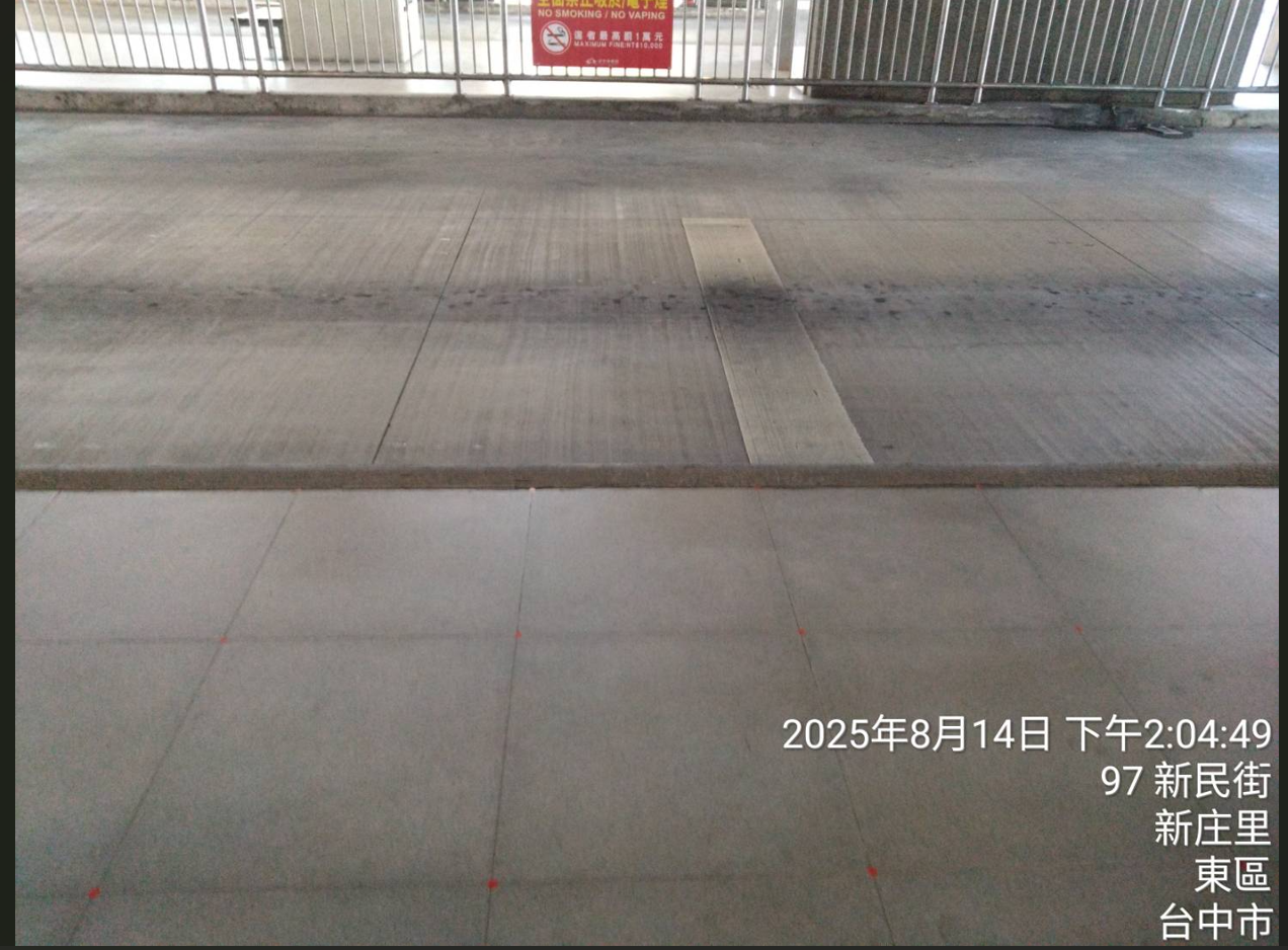 台中地院判決,本院偕同兩造於114年8月14日14時前往勘驗,現場石緣標線已經嚴重退色,若自電梯下到C月臺後走向車道方向,因視角緣故,一開始石緣標線幾乎與車道顏色相同,二者融合一體,難以辨認,需走進至車道時,方能從車道之標線勉強分辨出車道與月台之區別,已經失去標線之功能,且搭配現場並無任何提醒行人注意月台高低落差之警告標示,導致行人可能因此未注意月台高低落差,影響行人安全甚鉅。台中市交通局對該處光線不足及標線退色未即時處理,亦未設置警告標語,導致欠缺安全性,未善盡養護、巡查及檢測之義務,並迅速採取必要措施,足見其管理顯有欠缺。