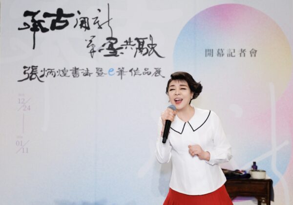 圖:聲樂家簡文秀帶來〈望春風〉 以歌聲力挺書法文化藝術。(圖/億光文化基金會提供)