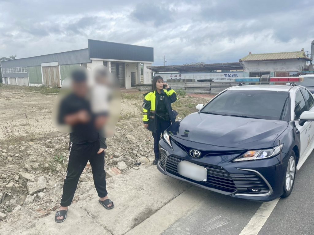 社苓派出所警員熊紫涵、鄭睿綸見男童衣物及身體已被雨水浸溼,加上寒流來襲、氣溫驟降,立即先行將男童帶上巡邏車避寒,提供熱飲並安撫情緒,同時於附近逐戶訪查。經了解,4歲男童因家中大門未上鎖,獨自在低溫下外出,員警最終順利在路旁找到焦急尋找孩子的父親,讓男童平安返家。