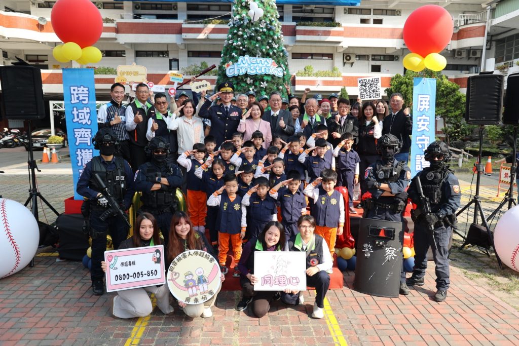 屏東縣政府警察局為守護縣民生命、財產與人身安全,特於115年1月10日「110」這個特別的日子,結合屏東地檢署、犯罪被害人保護協會屏東分會、地政士公會及美金幼兒園 等校園師生以及社區代表等共同推動「警勤區、校區、社區」三區共構防詐防暴行動,強調「即時通報、迅速介入與跨機關合作」的重要性,活動內容以「防詐騙、防兒虐、防老虐、防家暴、防性侵」等通報議題,結合查找詐欺「潛在被害人」、婦幼與少年安全保護等面向,扣合「打詐掃碼一點通」核心概念,展現從一通電話啟動守護機制、即刻串聯司法與警政資源的實務作為,實踐「屏安護民」理念,將安全防護網全面鋪設到民眾生活的每一個角落,全面提升預防與即時應變能量,打造更周全的安全防護網;並利用今天呈現去年114年打詐成果,不僅在詐欺受理數與財損數雙降外,在主動出擊上,破獲數達2903件(較113年增加97%),在查扣不法所得上7120萬(增加257%),攔阻守住民眾財產金額也高達1億9136元(增加15%),打詐成效良好讓民眾有感!