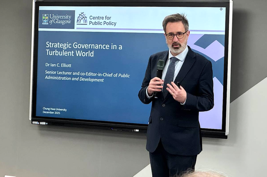 ▲英國格拉斯哥大學Ian C Elliott博士分享專業見解,促進跨國學術交流。(圖/中華大學提供)