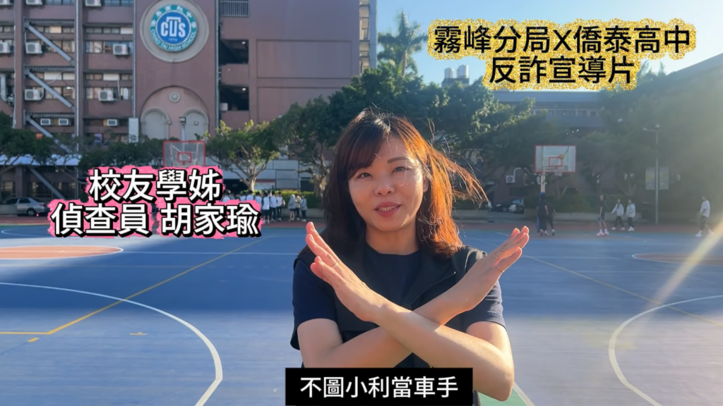 影片尾聲更安排驚喜彩蛋,由現任員警、同時也是該校校友的學姊現身,親自向學弟妹喊話,提醒青年切勿因貪圖小利而誤當詐騙車手,為宣導內容增添溫度與共鳴。