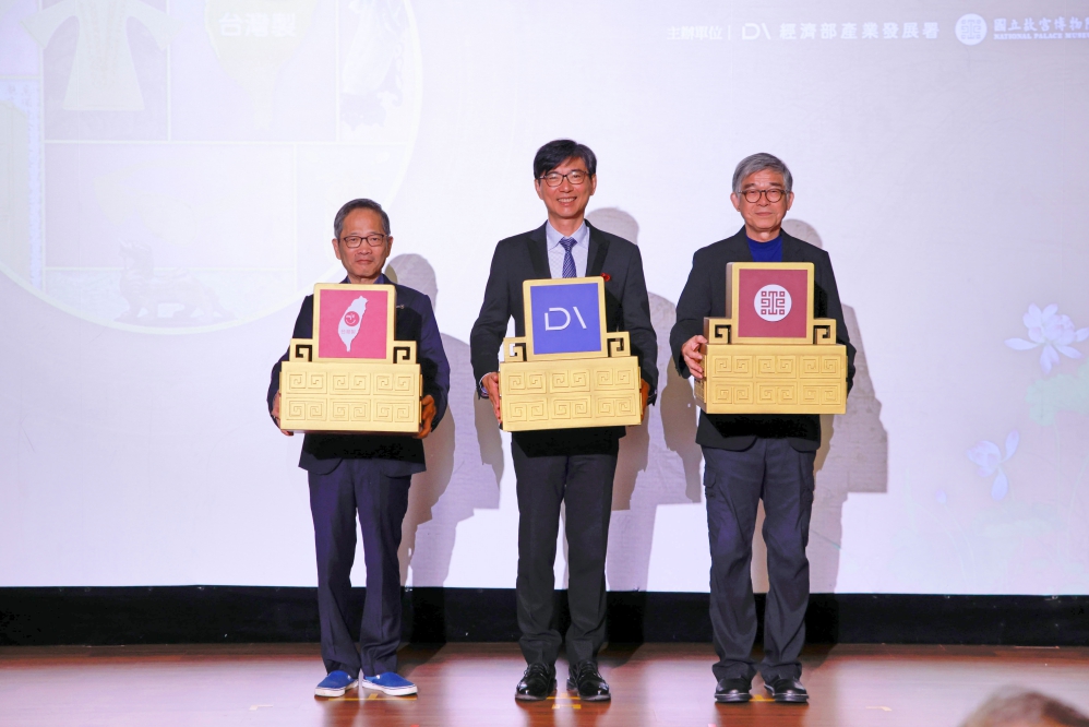 優織隆代表品牌總監曾裕屏於2025台灣精品獎典禮上台領獎。(左1)圖/優織隆提供